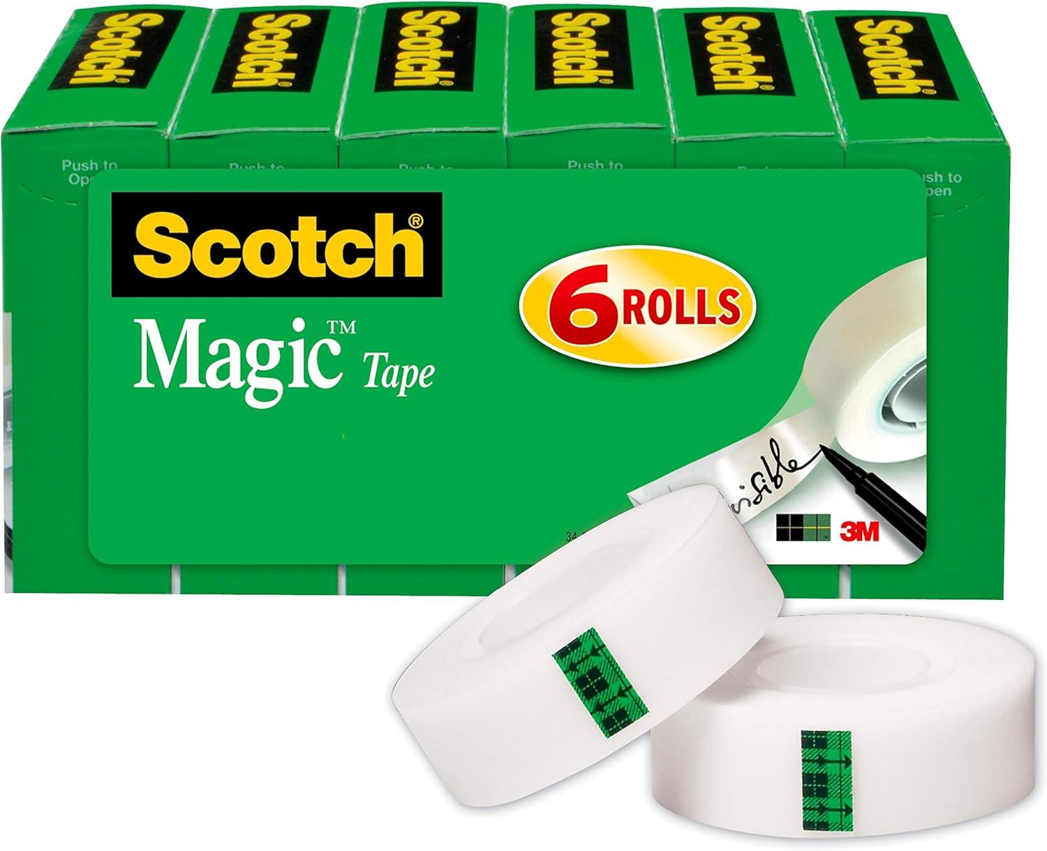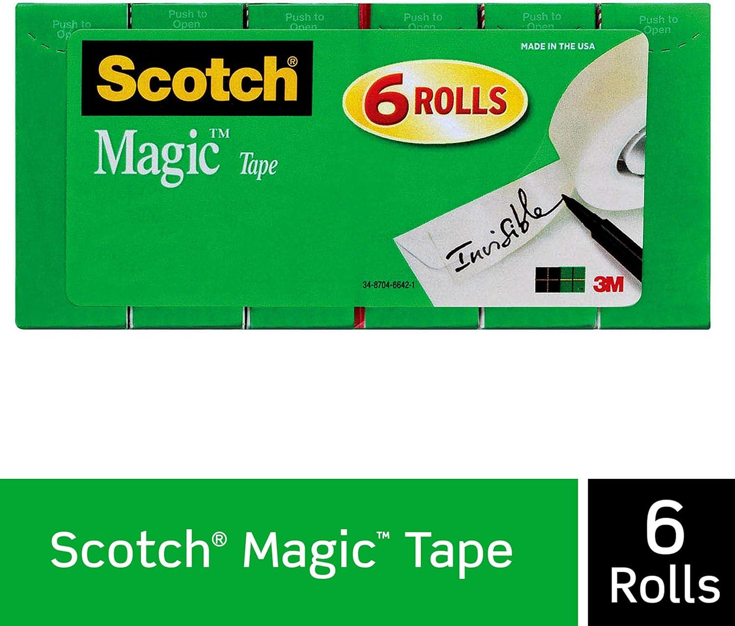 - Our clearance section features the best deals on Scotch Magic Tape, 6 Rolls with Tape Dispenser, Numerous Applications, Invisible, Engineered for Repairing, 3/4 x 1000 Inches(6 Rolls) and accessories. Check it out now!