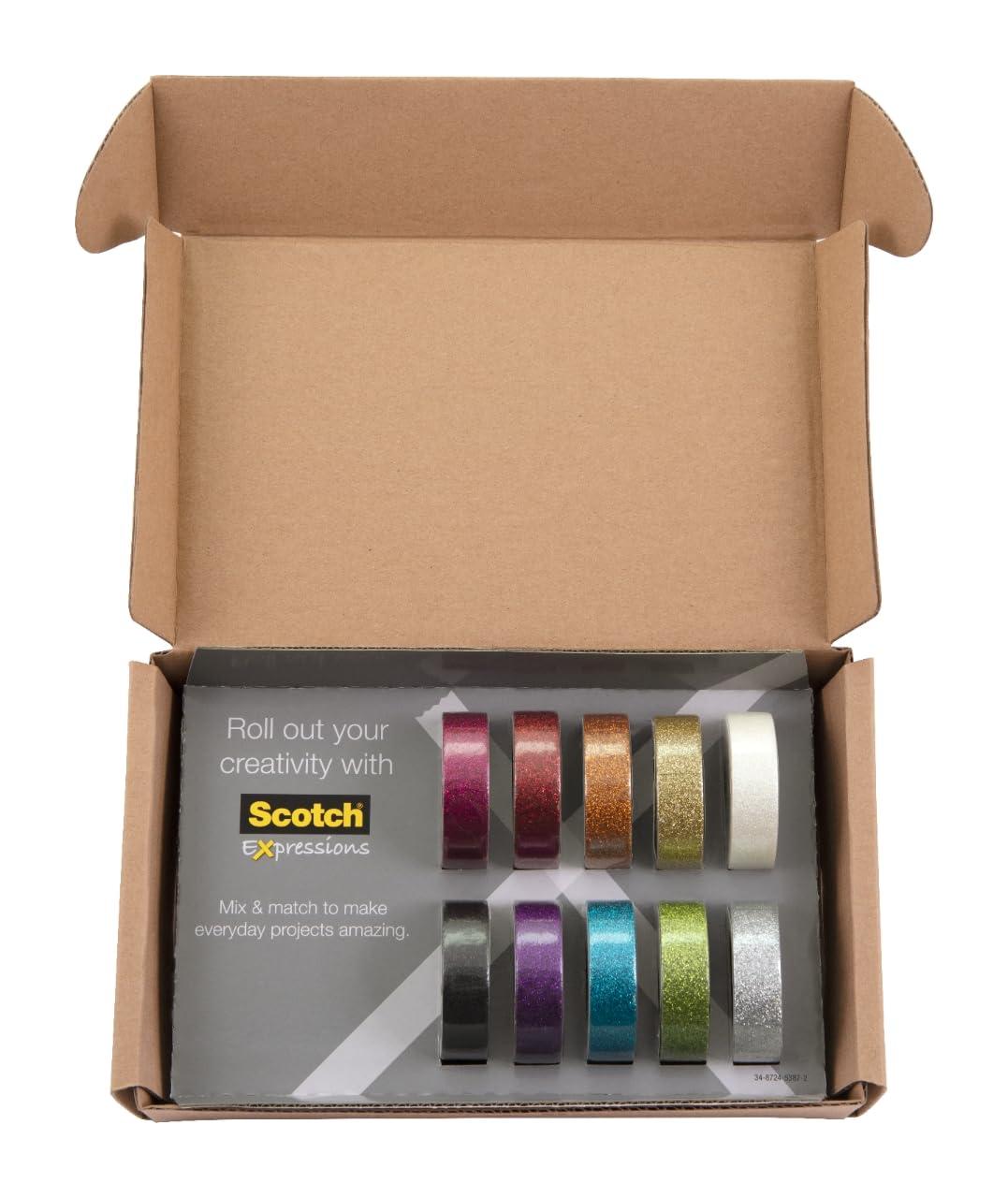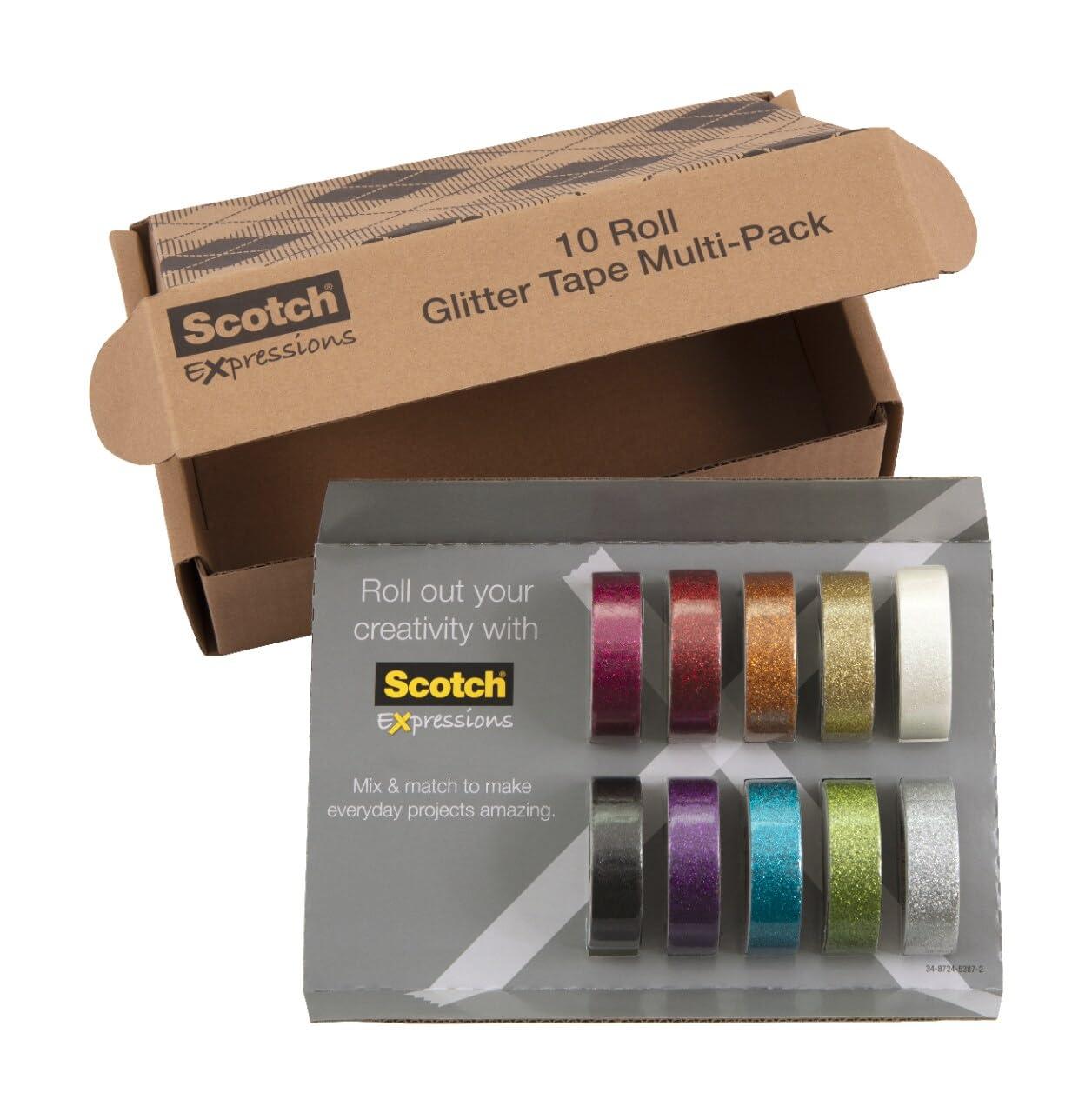• Scotch Glitter Washi Tape, 10 Rolls, Great for Holiday DIY and Wrapping, School Supplies, Craft Supplies, and Teacher Appreciation Gifts(10-Pack)