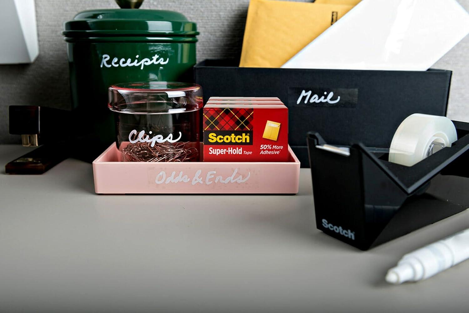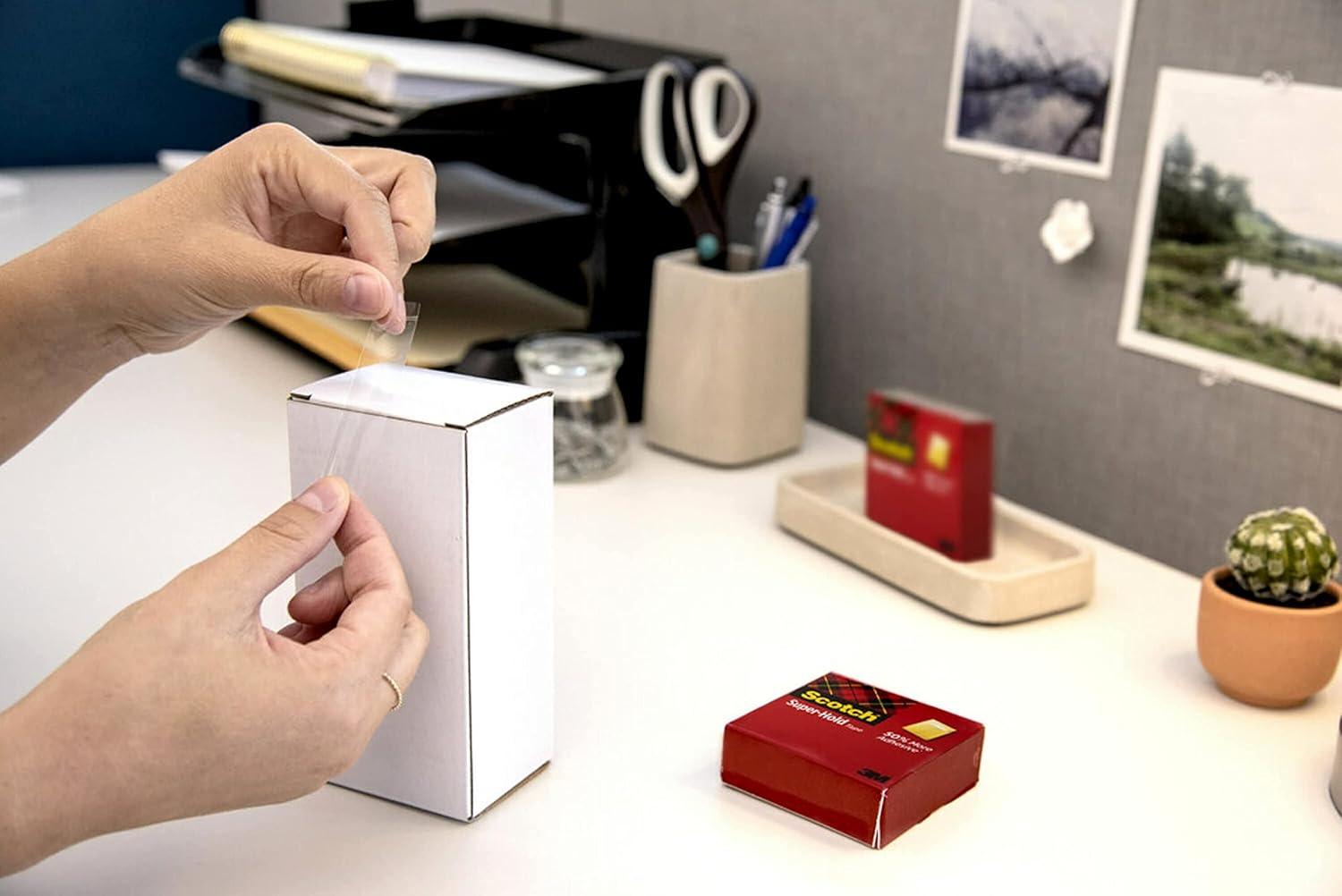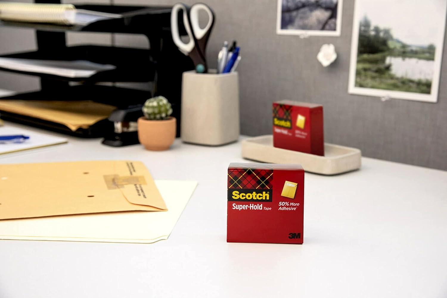 From sealing envelopes to making quick fixes on the fly, rely on the powerful bond of Scotch® Super Hold Tape. Designed with 50% more adhesive, this innovative tape offers a stronger bond than our standard transparent tape (Versus Scotch® Cat. 157 Transparent Tape). The thicker backing delivers outstanding durability when a secure, lasting hold is essential. Virtually crystal clear, this tape holds strong without standing out–perfect for repairs, mounting, crafts and more. The convenient dispenser fits comfortably in your hand and lets you unroll and cut your desired amount with ease. Whether you're concealing confidential documents, sealing a small care package, trust what matters to you to the superior adhesion of Scotch® Super Hold Tape.
