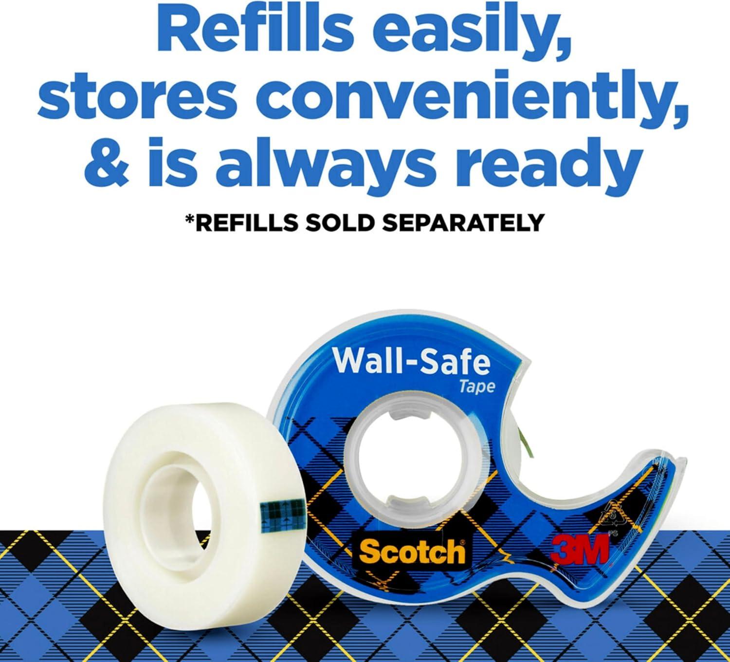 Art is precious. So is your paint and drywall. Display the things you love without ruining your walls with Scotch Wall Safe Tape. There isn’t another adhesive like it. Easy to use, strong and safe tape like our tried and true Magic Tape. Firmly holds kid’s artwork, decorations, reminders. But when it’s time for Wall-Safe Tape to come off, it comes off easily. No residue. No rips. No wall repairs. The unique Scotch Brand dispenser is included, so you get the Wall-Safe Tape you need with no snags, no waste, no problems. Scotch Wall-Safe Tape. Perfect for your walls. For your displays. For you.